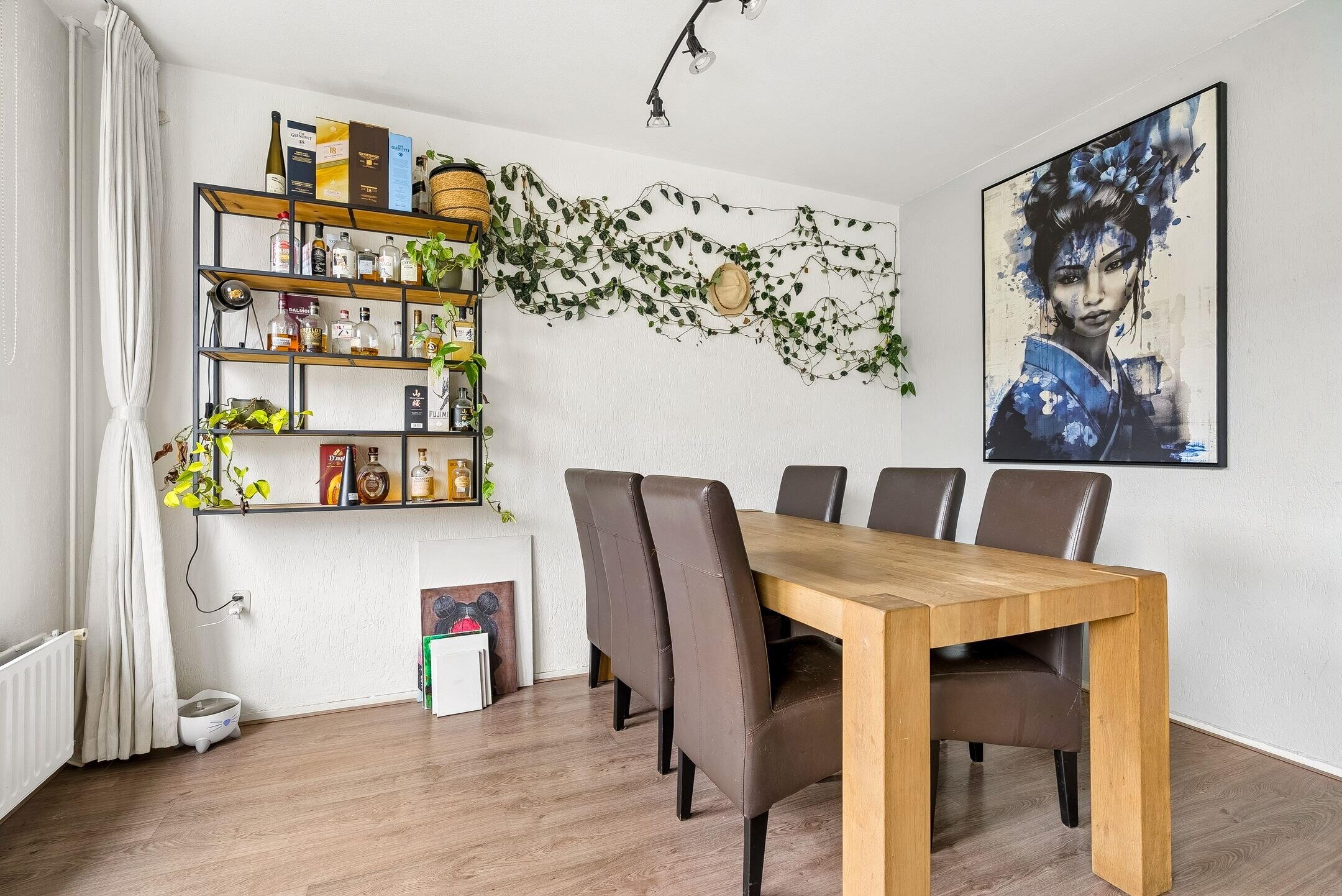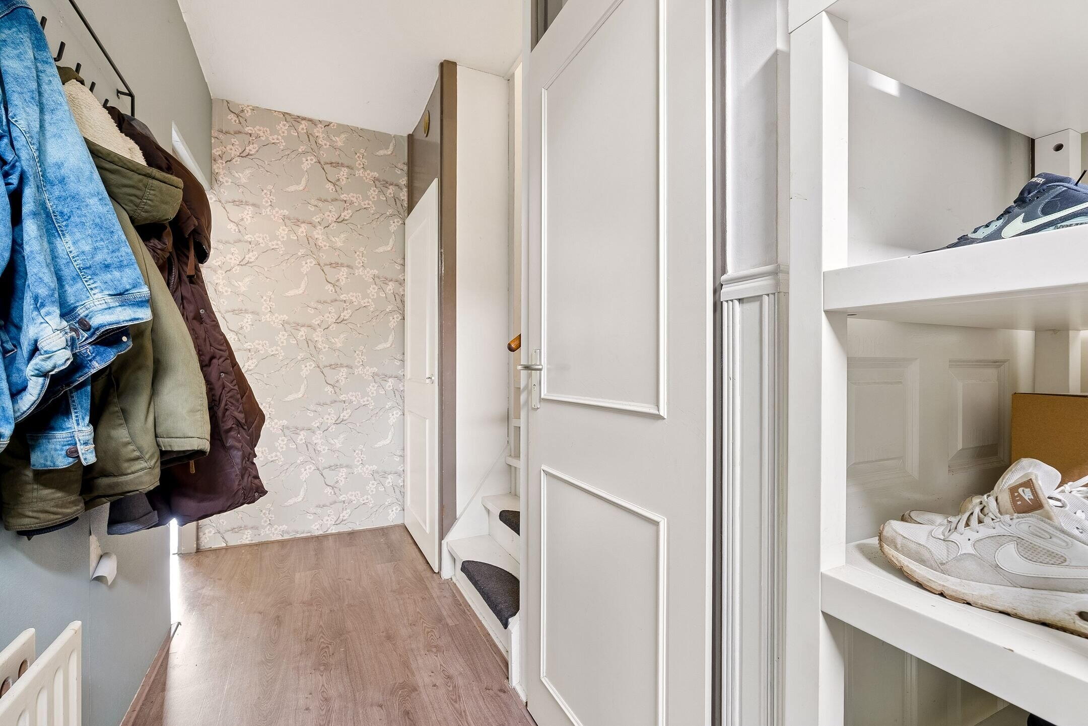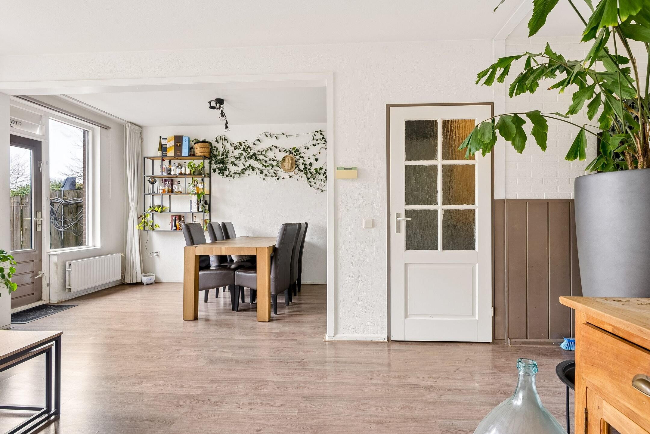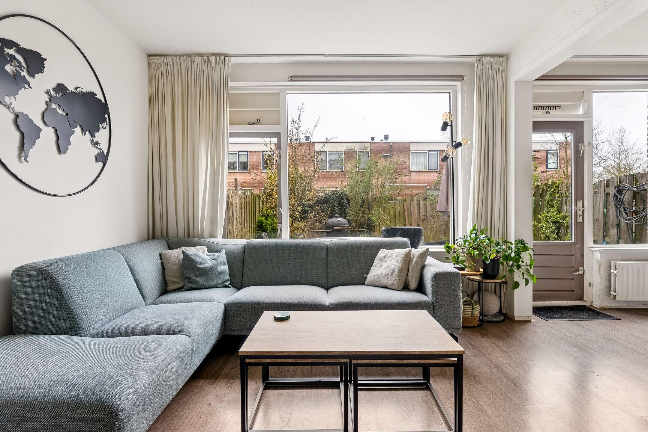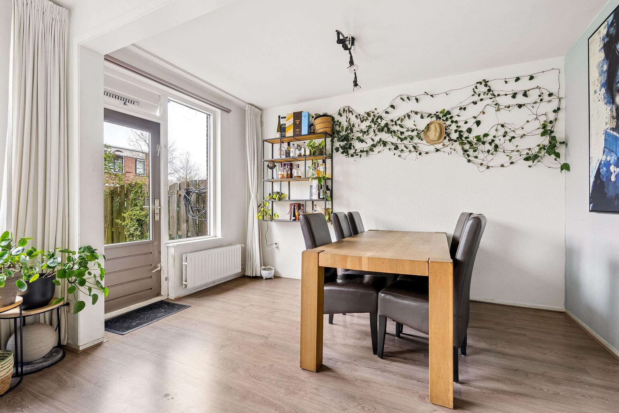 Bij binnenkomst in de hal heb je toegang tot het toilet, de meterkast, trapopgang naar de eerste verdieping, trapkast, berging en de woonkamer. De woonkamer is heerlijk ruim en voorzien van veel lichtinval. De zithoek is aan de achterkant van de woning gelegen en de keuken aan de voorkant.